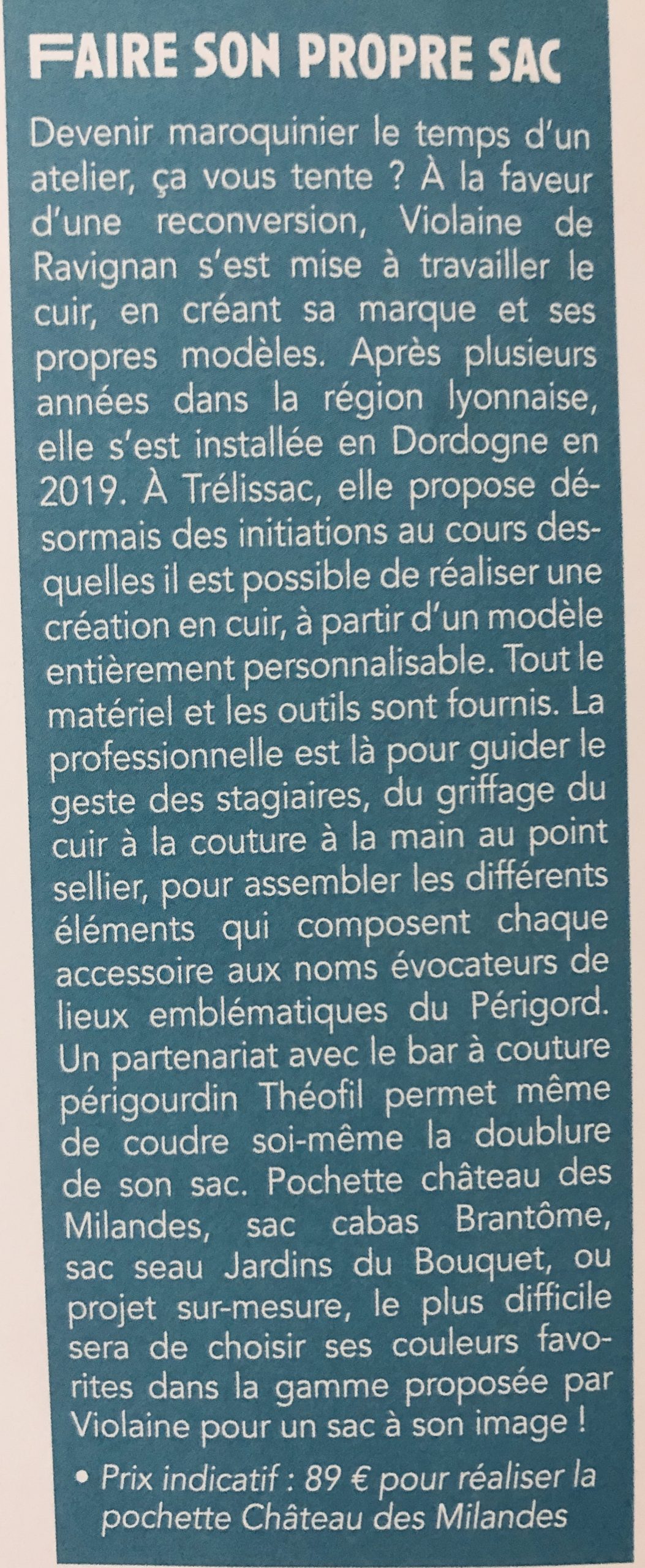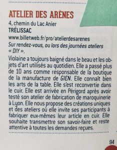 Le Comité Départemental du Tourisme Dordogne rédige un article pour présenter l’activité de l’Atelier des Arènes en lien également au partenariat avec eux.